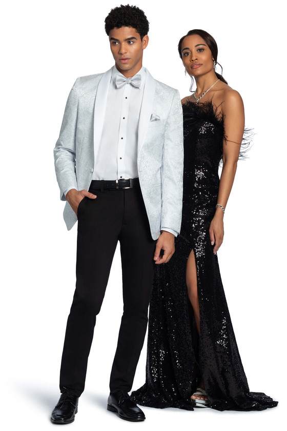 White/Silver Aries Paisley Slim Fit Tuxedo 172